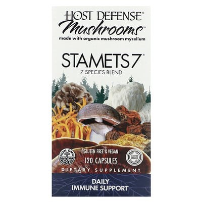 Host Defense Stamets 7 in the 60-count capsule provides a consistent and balanced blend of seven important mushrooms: Royal Sun Blazei, Cordyceps, Reishi, Maitake, Lion's Mane, Chaga, and Mesima. Each of these mushrooms is present at 143mg per serving, totaling over 1000mg (1g) of mushroom content. This formulation is designed to offer broad support for various aspects of well-being, including immune function, energy levels, and cognitive health.