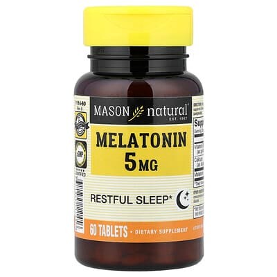 An effective 3 mg melatonin tablet complemented by Vitamin B6 for enhanced melatonin synthesis and calcium for general health, from Mason Natural.