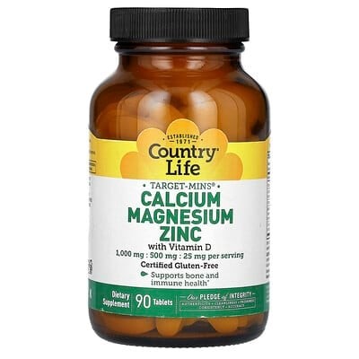 Country Life Target-Mins presents a comprehensive mineral formulation, delivering substantial amounts of calcium (1000 mg), magnesium (500 mg), zinc (25 mg), and vitamin D (5 mcg) per serving. This blend is specifically crafted to support vital bodily functions, especially those related to bone density and overall mineral balance.