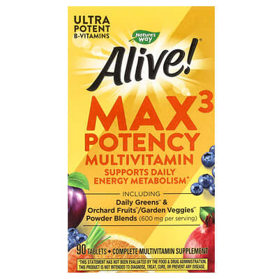This Alive! Max3 Potency Multivitamin from Nature's Way delivers a comprehensive profile of essential vitamins and minerals, aimed at providing foundational nutritional support for overall well-being. It includes significant amounts of B-vitamins for energy metabolism, Vitamin C for daily vitality, and Vitamin D3 for bone and immune support, among many others. The larger package size offers an economical way to maintain consistent daily intake.