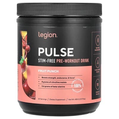 Pulse Fruit Punch is a high-stimulant pre-workout supplement packed with ingredients to support energy, focus, and athletic performance during intense workouts, plus added electrolytes.