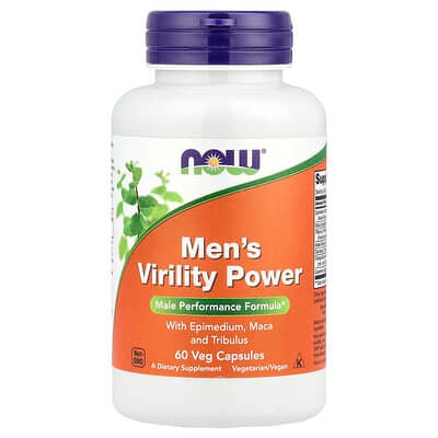 NOW Men's Virility Power is a complex herbal supplement crafted to support male vitality, fitness, and energy. It features a wide array of ingredients including Epimedium, Muira Puama, Maca, and Panax Ginseng, all traditionally chosen for their roles in male wellness.