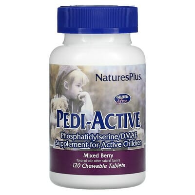 Nature's Plus Pedi-Active is a chewable tablet formulated for cognitive support, combining 100mg of DMAE bitartrate with 100mg of Phosphatidylserine-rich soy lecithin concentrate. This blend is designed to offer complementary benefits for mental focus and clarity, particularly in a chewable, flavored format which often appeals to a specific user group.