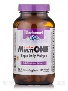 Bluebonnet's Multi One Iron-Free is a daily multivitamin and mineral supplement crafted for individuals seeking extensive nutritional support without any added iron. It contains a full spectrum of B vitamins, along with Vitamins A, C, D3, and E, all contributing to various essential bodily functions and overall vitality.