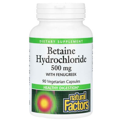 This supplement combines Betaine Hydrochloride (HCl) at 500mg with 100mg of fenugreek. Betaine HCl is commonly used to support digestive processes by aiding in stomach acid production, which can enhance the absorption of nutrients. The fenugreek content, while present, is a smaller dose.