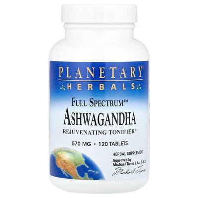 Planetary Herbals Full Spectrum Ashwagandha provides a blend of 500mg of Ashwagandha herb and 70mg of Ashwagandha root extract, totaling 570mg per serving. This 'full spectrum' approach aims to deliver the broad range of compounds found in the plant.