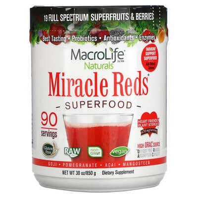 Miracle Reds is crafted as a broad-spectrum superfood powder, aiming to support multiple aspects of health through various proprietary blends. It includes a nutrient-rich super food blend, an antioxidant blend, adaptogenic and metabolic herbs, natural fibers, and non-dairy probiotic cultures. This comprehensive approach positions it as an all-in-one daily supplement for general well-being and vitality.